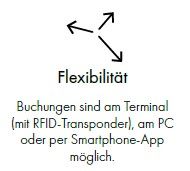 Ein Terminal ist jedoch nicht Voraussetzung für die Nutzung von ZWS Web: Buchungen können auch über die Smartphone-App (verfügbar für iOS und Android) und am PC durchgeführt werden.