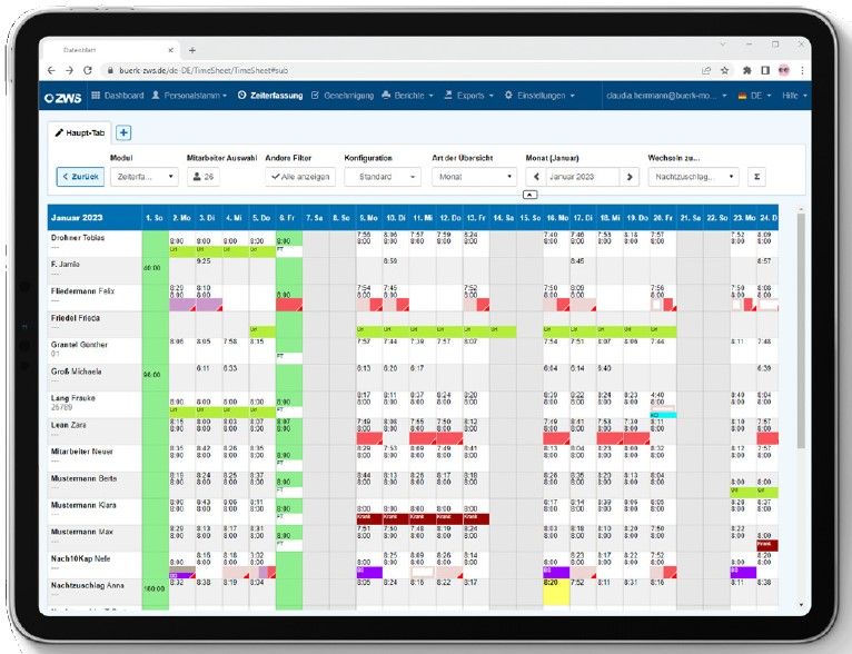 ZWS Web – Personalzeiterfassung für Unternehmen, Verwaltungen, Büros, Praxen und Kanzleien